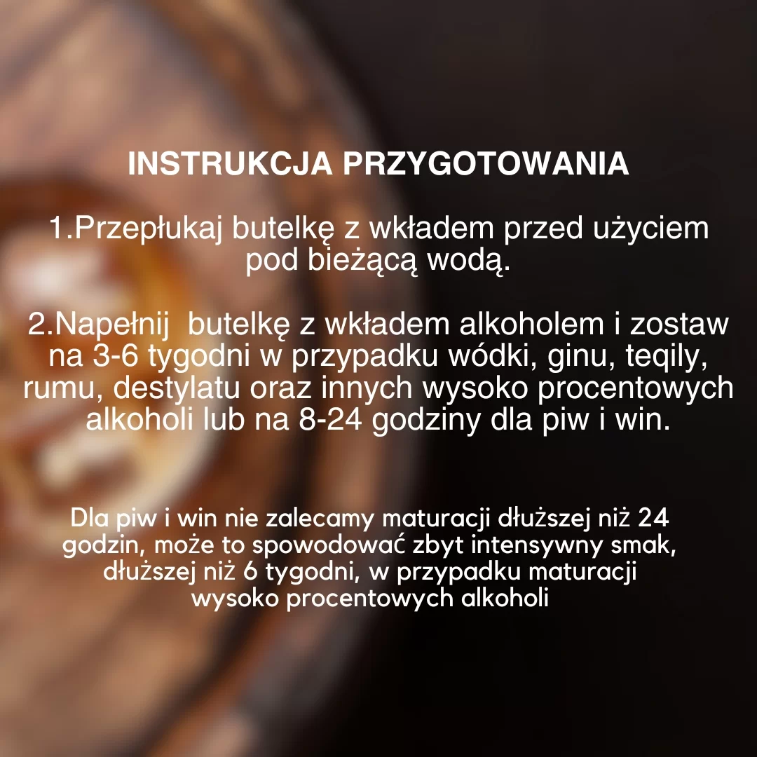 Nadając trunkom nuty karmelu, wanilii i kokosa, ten wkład pozwoli Ci w krótkim czasie odkryć zupełnie nowe wymiary smaku w domowych napojach lub podnieść jakość już dostępnych na rynku trunków.