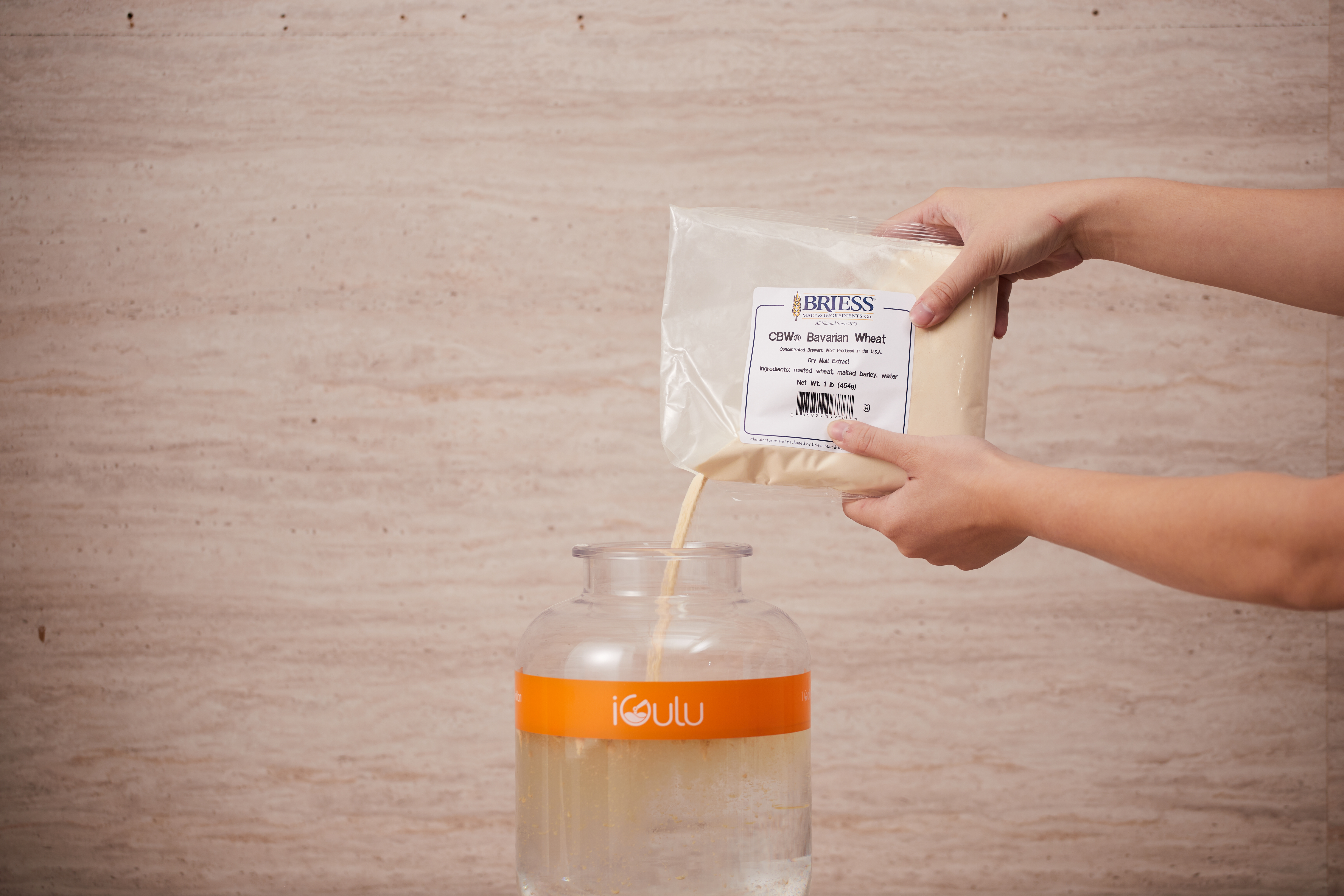 Wlej przefiltrowaną wodę i dodaj zestaw piwowarski do zbiornika fermentacyjnego.