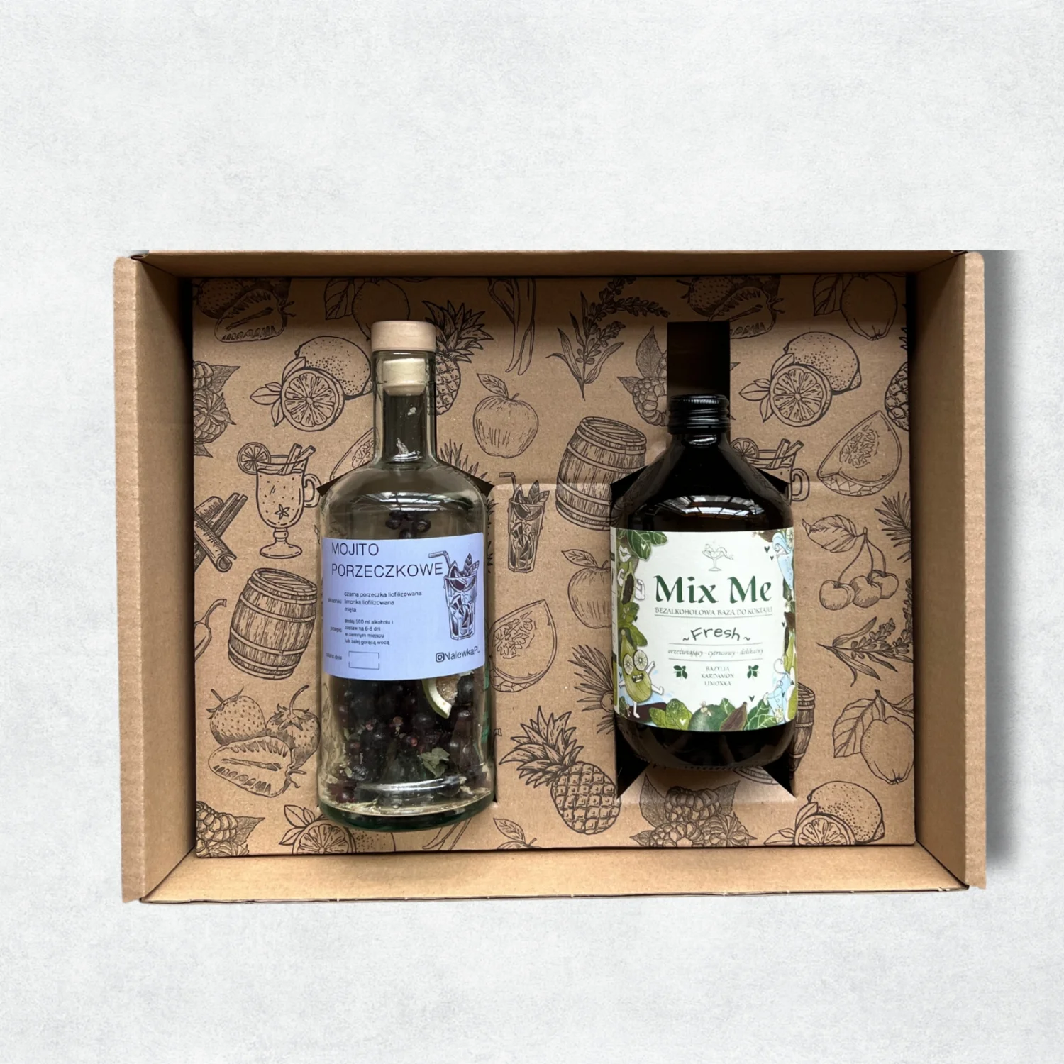 Koktajlowy zestaw Mix Me x NalewkaPL Fresh Mojito to doskonała kombinacja do przygotowywania unikalnych koktajli oraz doskonały upominek dla entuzjasty domowych nalewek i drinków.