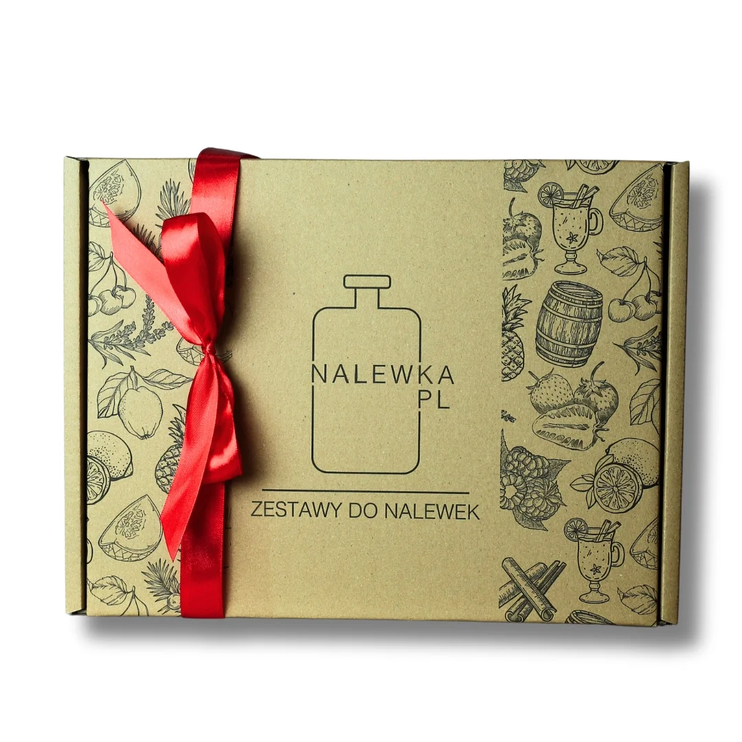 Każdy zestaw do robienia nalewek pakujemy w eleganckie, prezentowe pudełko, które zabezpiecza butelkę w transporcie.