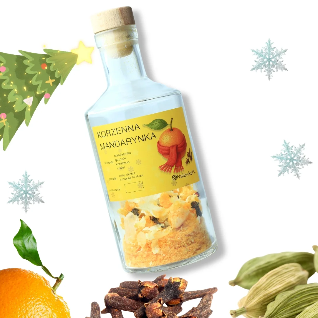 Składniki prezentowego zestawu do nalewek “Korzenna Mandarynka”