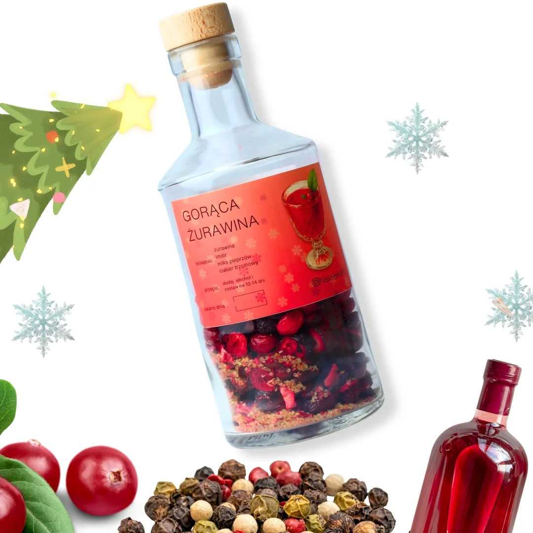 Składniki prezentowego zestawu do nalewek “Gorąca Żurawina”