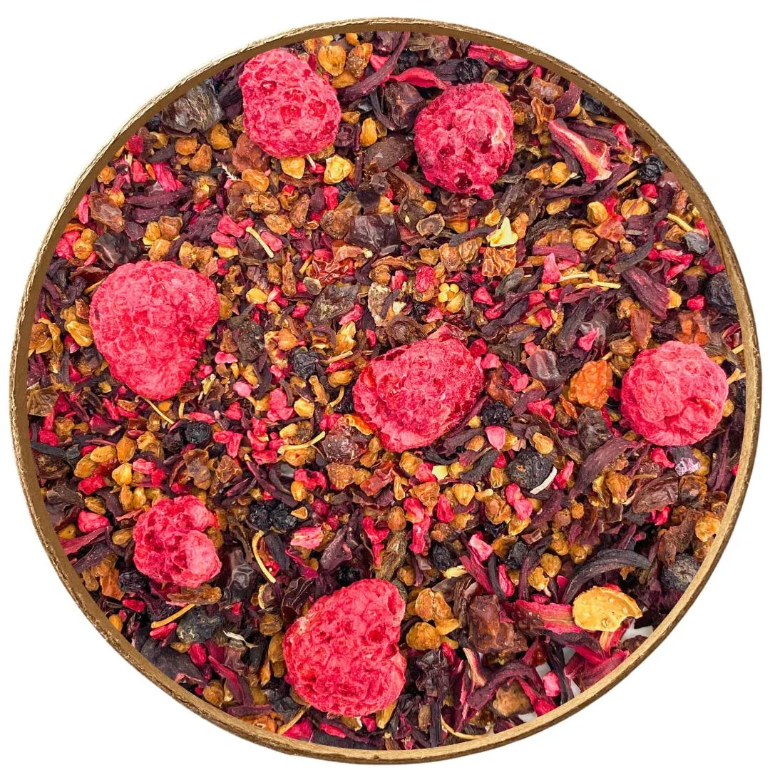 Składniki: dzika róża, hibiskus, morwa biała, jarzębina, malina liofilizowana, aronia, czarny bez, aromat.