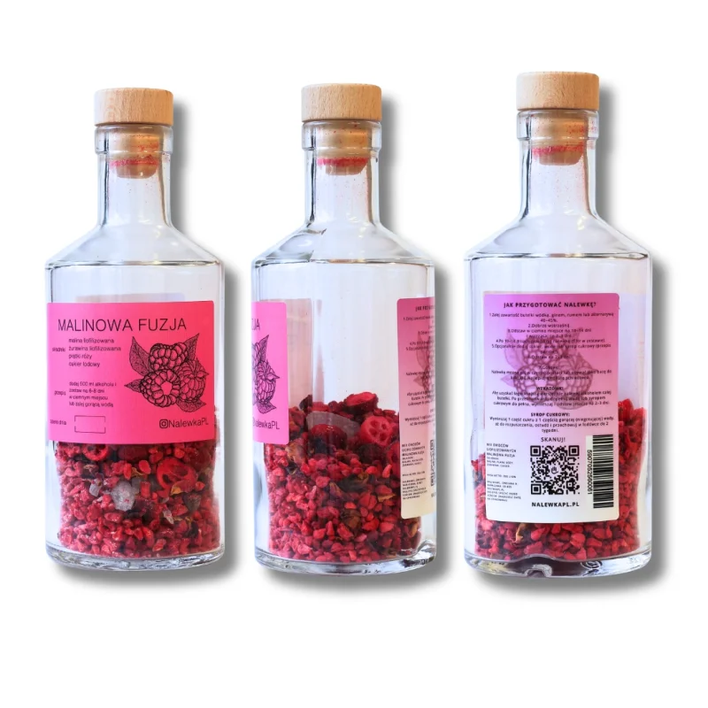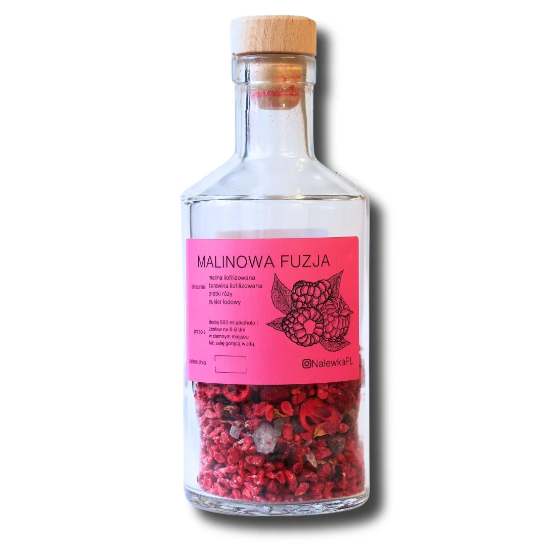 Malinowa Fuzja mieszanka do robienia napojów, nalewek szklana butelka 500ml