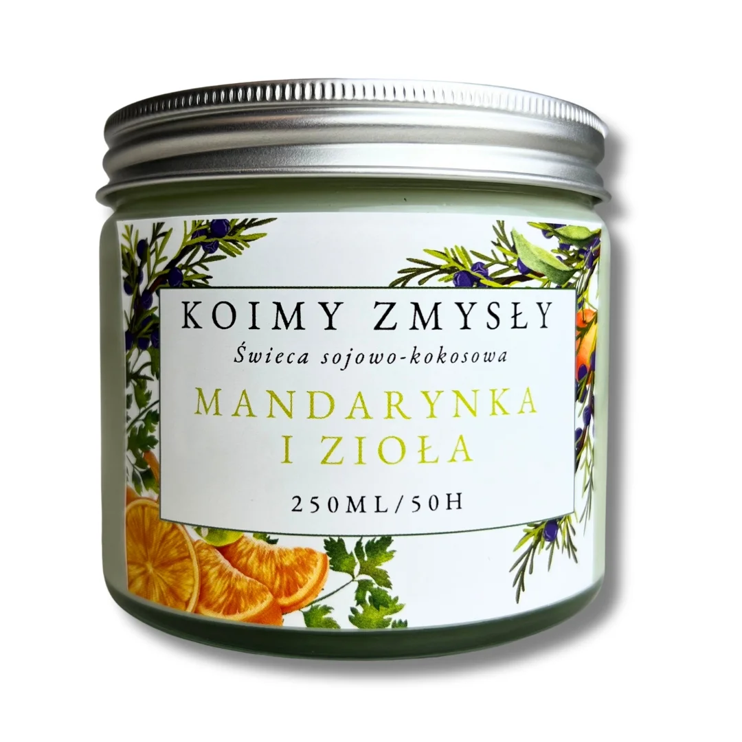 Świeca sojowo–kokosowa „Mandarynka i Zioła” — 250 ml / 50 h